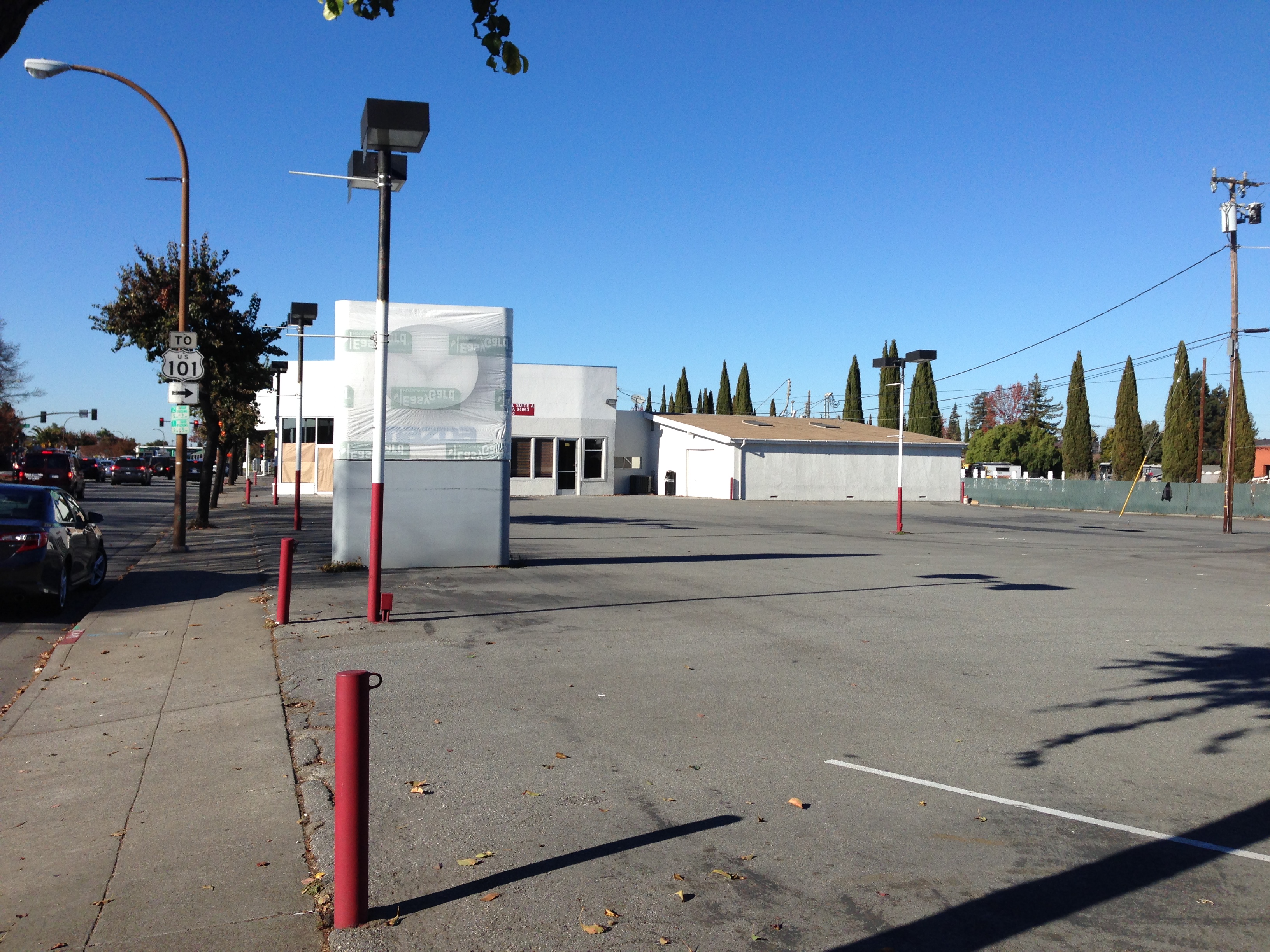 All of the “Kia Redwood City” signs are gone, and there is not a single car on the property. Interestingly, though, the showroom windows have been papered over from the inside and there are signs of activity inside. Search as I might, however, I could find no indication of what is going on, or what happened to the Kia dealership. Perhaps they’ve moved to Boardwalk as well? I haven’t been over there to check. But if so, I would have expected to see “we’ve moved” signs all over the property, directing potential customers and Kia owners looking for the service department to their new location. A web search turns up nothing; no indication that they’ve gone anywhere. And a quick check of the permits and projects list on Redwood City’s website shows no new activity on the property. It’s a mystery. If anyone knows what’s going on here, let us know! Otherwise, I expect we’ll find out once the work that seems to be going on inside the showroom is completed.