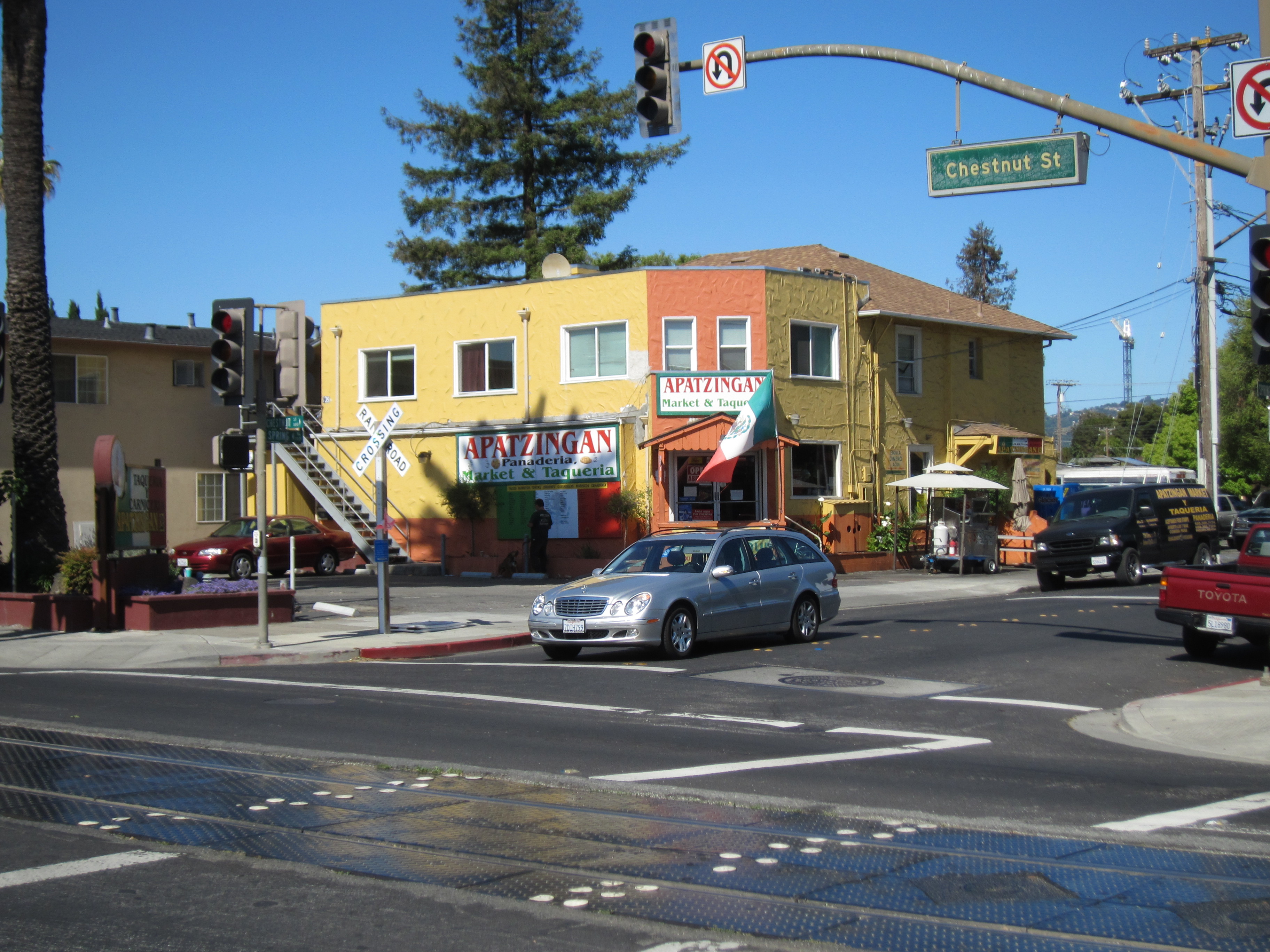 The last listing for the airport in the pilot’s airport directory was in 1939. The airport is presumed to have closed sometime between 1939 and 1943, since the 1943 USGS topographical map no longer included the Redwood City airport. In 1948, although the airport had long been closed, aerial photographs still showed the airport hangar. Sometime after that, though, the hangar was torn down. The remaining airport buildings were torn down in 1970, except for the Aviation Cafe which apparently became the Hideaway Restaurant. It appears that that building, at 739 Chestnut St. (on the corner of Chestnut and Spring St.), turned into Apatzingan Market and Taqueria: