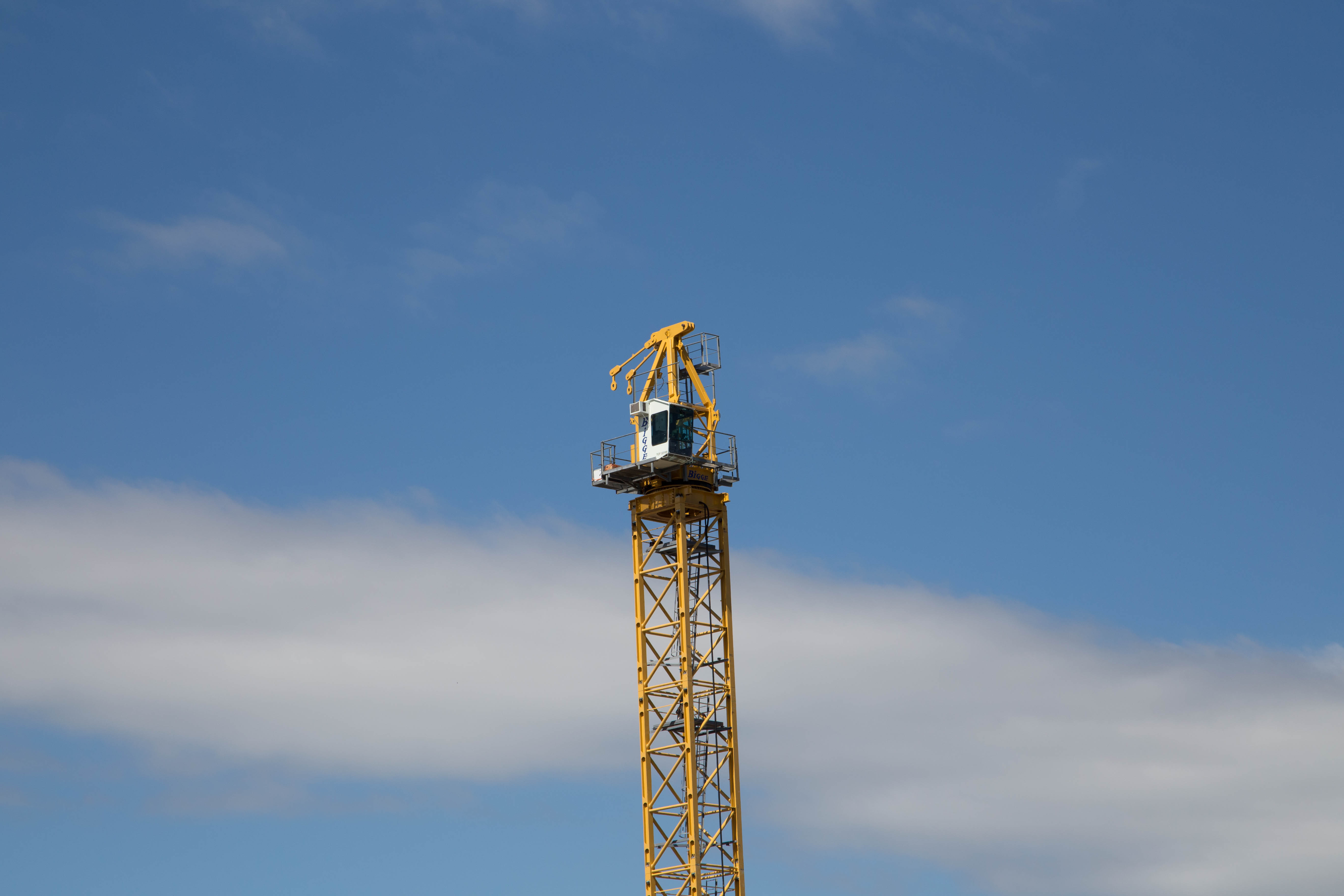 Here is a closer shot of the top of the tower, showing the operator’s cab and the point where the working arm will be attached to the tower: