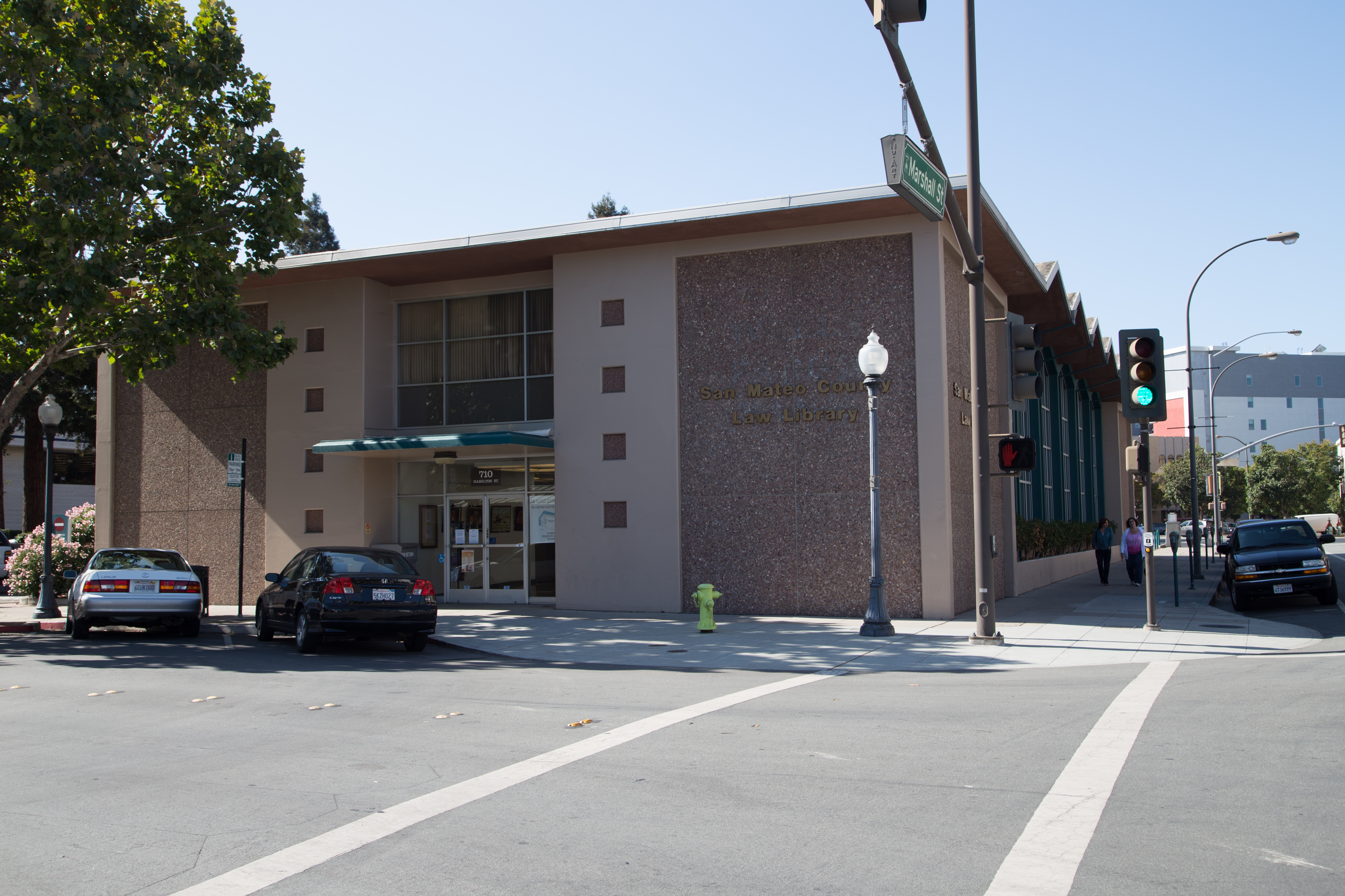 This site is composed of two properties: one currently occupied by the San Mateo County Law Library (on Marshall) and one occupied by Chase Bank (on Broadway). Together the properties make up a site that is an entire block roughly 1.4 acres in size. Buildings ranging from three to twelve stories could be built here, containing up to 180 apartments or condos.