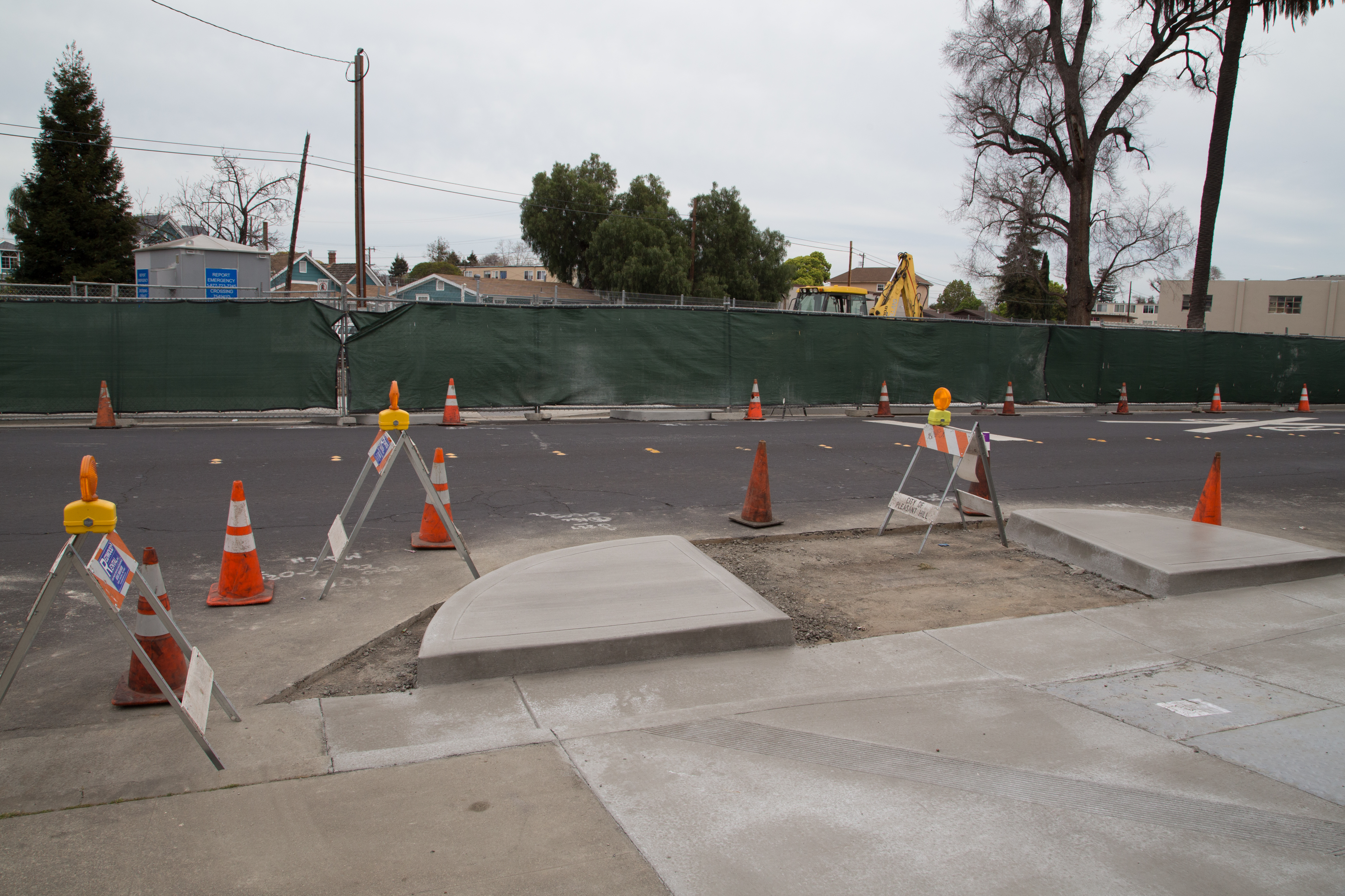 Although it is not clearly visible in the above photo, there is a mid-block crosswalk going in as well: