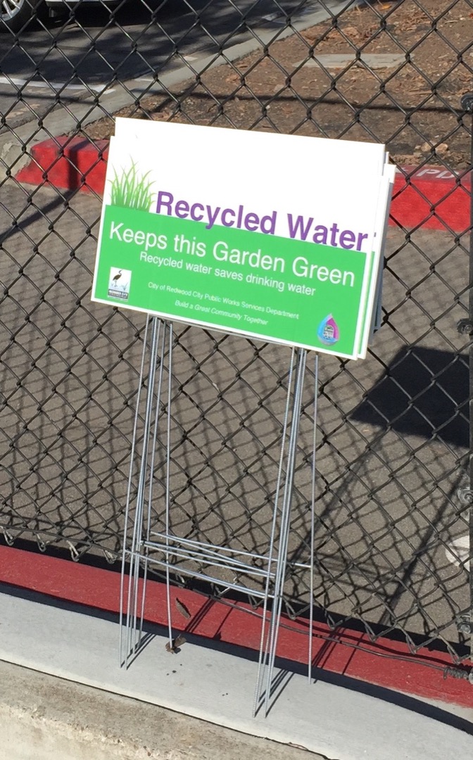 Redwood City is now evaluating the means to bring the purple pipes that carry recycled water over to the west side of the freeway, where it will be available to some of the newly constructed office buildings and to the Stanford in Redwood City project, among others. In the mean time, for those of us who don’t have wells or recycled water piped to our homes, Redwood City is providing a sweet alternative: the Residential Recycled Water Fill Station, at the city’s Public Works yard (1400 Broadway Street, near Woodside Road). For anyone who has taken their mandatory training class, an almost limitless supply of recycled water (with some caveats; read on) is available. And it’s free! That’s right, free. So we can drastically cut back on our water use by watering our yard with free recycled water. Of course, it won’t save us money—at the current rate 1,000 gallons costs us about $4.70—but this isn’t about saving money, it’s about saving water.