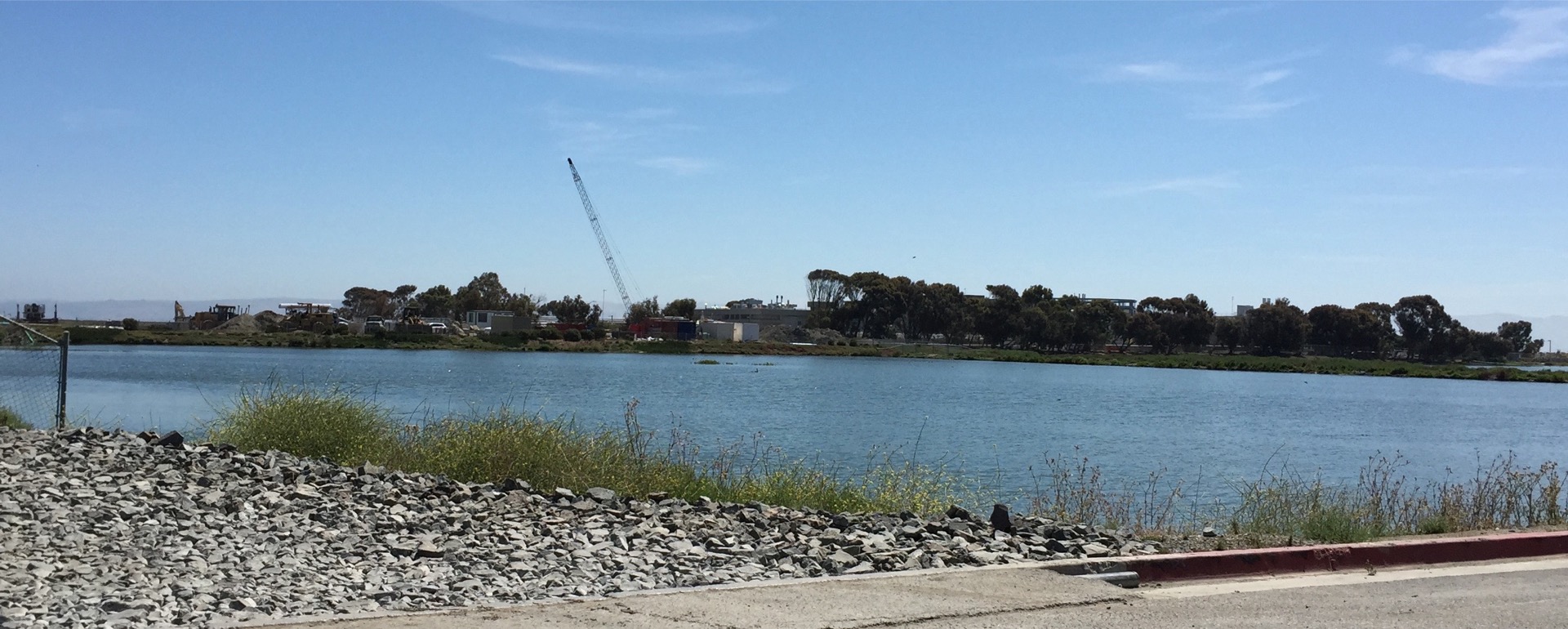 The plant treats our wastewater, removing 97% of all solids, organic material, and pathogens. The resulting “high quality effluent” is then discharged into the deep water channel of the San Francisco Bay. Which is nice enough as far as it goes, but in 2006 Redwood City built an adjoining recycled water facility that puts some of the treatment plant output through additional filters plus a disinfectant stage, resulting in water that is just one step below the level approved for human consumption. Then, Redwood City added pumps and pipes to send the recycled water to various sites on the Bay side of Highway 101.