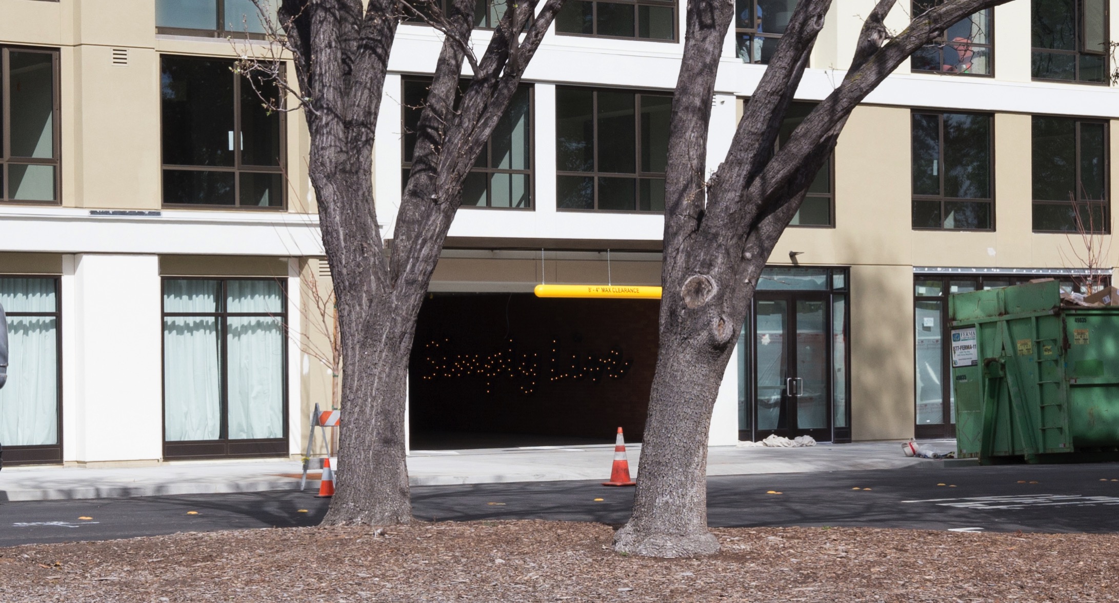 On the way to my next and final stop, I passed by Marston (the 8-story apartment complex under construction at the corner of Main and Marshall). Their slogan is “Live Simply. Simply Live”. With the construction fences down I was able to see inside the Marshall Street entrance to the parking garage, and was delighted to see this: