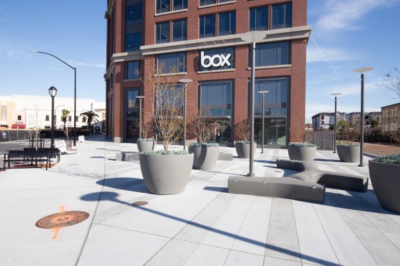 Speaking of new tenants, it appears that we’ll be getting a wine bar in one of the Crossing 900 (Box) buildings. Someone has submitted an application for a use permit to allow a wine bar in the 900 Middlefield building (the one closest to the Caltrain station). It appears that the wine bar would be on the ground floor of the north-facing end, looking out over North Plaza: