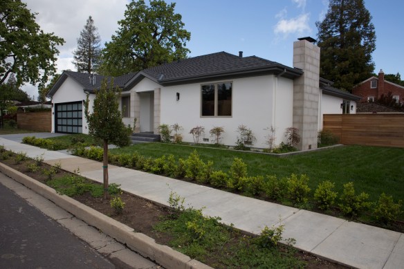 I watched the transformation of the house at 99 Nevada with great interest. Formerly a tired, typical ranch home of the style built here starting in the Nineteen-Forties, the developer essentially demolished the entire house (leaving just enough to qualify as a “remodel”) and started over. I was so pleased to see what they built: a modern take on the ranch home, rather than a McMansion. During the construction I observed that the house had a well (for landscape purposes) which the developer was careful to preserve. I had hoped, given the amount of money and care put into the home’s construction—the final asking price was north of $2 million—that they would take equal care with the landscaping. But no, as the construction wrapped up and the landscapers moved in, here came the sod: