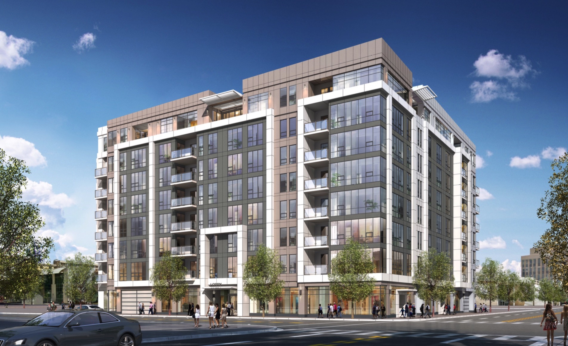 The planned building is not insignificant: it will rise to 8 stories, with a 4,500 square-foot retail space on the ground floor and seven stories of condominiums above. The ground floor level will also include a parking garage for patrons of the retail space, while below ground there will be three levels of parking for the condominium owners. Note that although this building is a tall one, the Indigo apartments that are right across the intersection are even taller, at 10 stories high. Plus, the nearby Marston apartments—just visible in the above photo on the left side behind the streetlight—also rise to 8 stories. So this building, which would admittedly be the tallest on its block, in reality should feel right at home within the neighborhood: