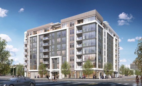 The second stand-out feature of this project? Anton Development, the project’s developer, is proposing that out of those 250 apartments, 50—a full 20%—will be set aside for Very Low Income residents. Families who are classified as Very Low Income make between 31% and 50% of the Area Median Income. For a family of four in San Mateo County, that works out to no more than $58,600 per year (for two persons, the upper limit is $46,900). For them there are very aggressive rate caps that will limit the amount that they will pay in this development. Specifically, for a one-bedroom apartment the rent is capped at just under $1100 per month, while a two-bedroom unit would cost a family in the Very Low Income category just over $1300 per month. Relative to what other nearby apartments are renting for (we don’t yet know what the 200 market-rate units in this development will cost), the rents for these 50 apartments will be very affordable indeed. And I’m very pleased to see that the affordable units will not be segregated within the building, but instead will be scattered among the market-rate units.