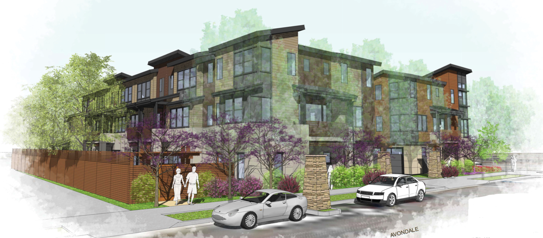 This rendering is from the plans submitted to the city a year ago by the original developer, but it appears that SummerHill’s final product will look something like this. Certainly, the documents that were approved at the recent City Council meeting seem consistent with the original vision of twelve for-sale condominiums on the site, and the site plan that was just approved matches up nicely with the site plan that the Planning Commission OK’d a year ago.