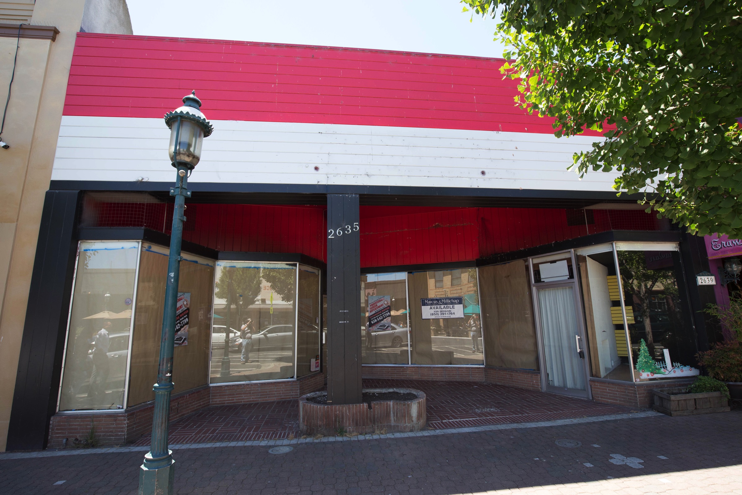 Goetz Brothers’ move opens up a storefront that is currently flanked by two other empty storefronts. Towards El Camino the space at 2635 Broadway has been empty for many months now. Most recently that space had been occupied by Techworld Trading Inc., a company that does mobile phone repair, among other things (replacing cracked screens on phones and tablets is a specialty). They, too, remain in business, both online and at their new location on Oak Grove Avenue in Menlo Park. They left behind a large space that has plenty of street frontage: