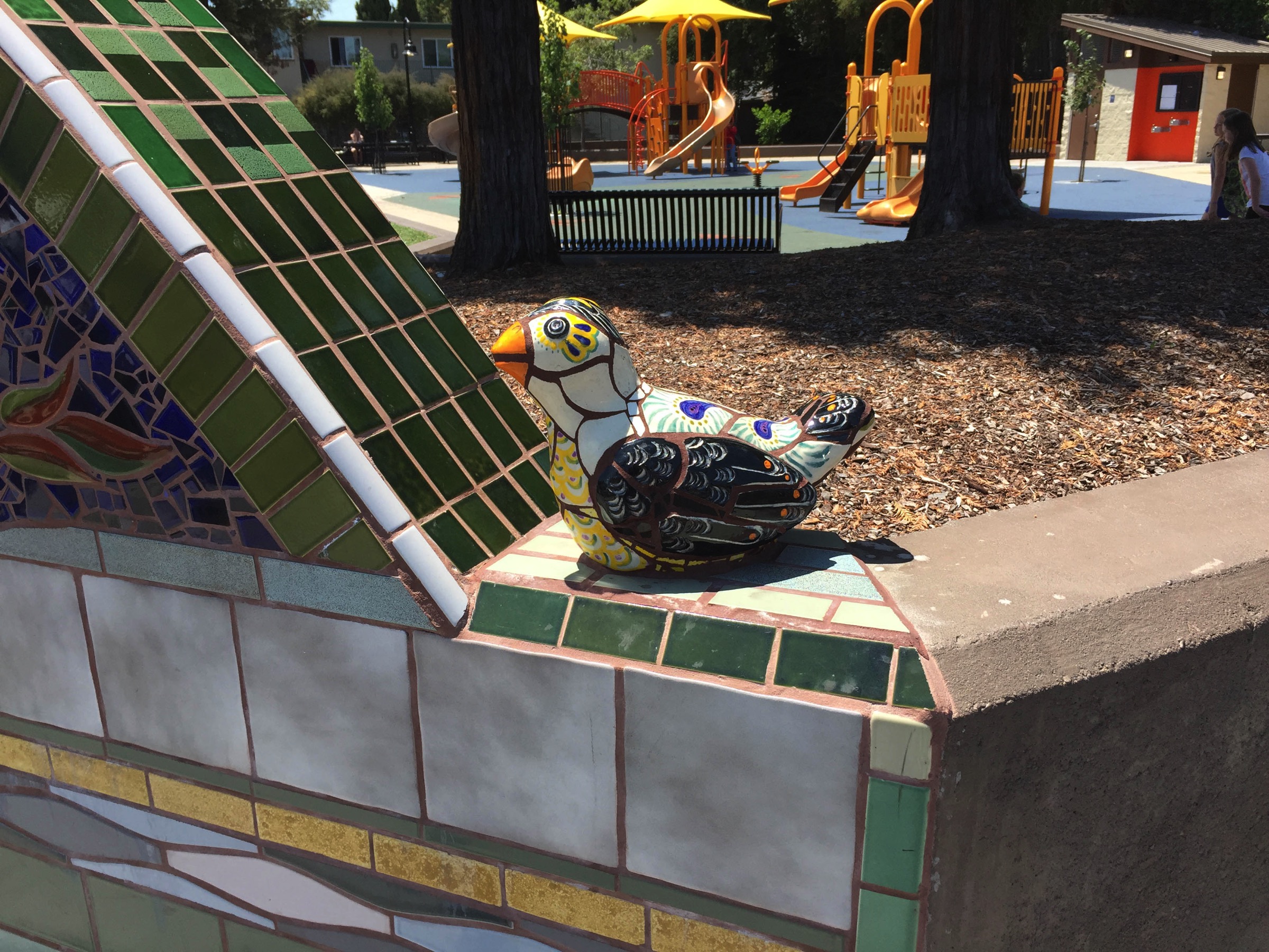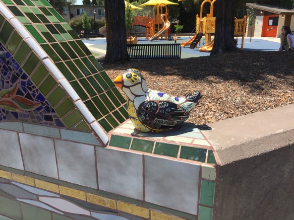Our public art isn’t all paint, of course: as I walked down Middlefield Road I passed Jardin de Niños park, and was delighted to see the latest additions to their lovely tile sign: