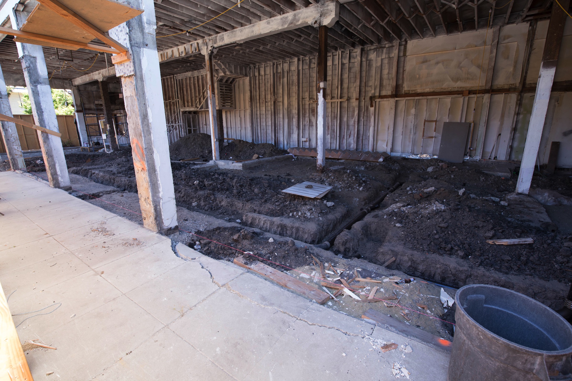 Finally, I’ve been keeping a watchful eye on Broadway Masala. Although it appears that someone is occasionally dropping by the work site and moving a few things around, I’m disappointed to report that work has essentially stopped (from what I can see): trenches have been dug and new sanitary sewer pipes have been put into those trenches, but the trenches have remained open now for a couple of weeks, at least: