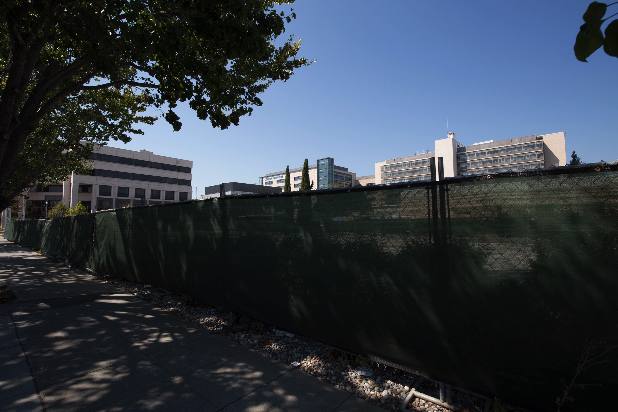 I’ve always thought of the Bay Area as a pretty green place, both in terms of vegetation and in terms of attitude. Lately, however, Redwood City in particular has been greening itself up in an altogether different way: through the use of construction fencing covered with green fabric: