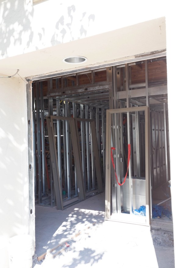 Based on the project plans that are on the city’s website, this framing is for a storage room and for the restrooms.