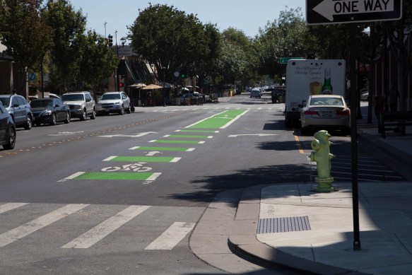 New bike lanes are slowly appearing in other parts of the city as well. Although Redwood City’s Complete Streets Advisory Committee is involved with helping improve traffic flow for motorized transport, an important part of its charter is to improve things for those of us who walk and ride bikes. The theory here is that if we can make things safer and easier for pedestrians and cyclists, many people will opt to leave their cars home and instead walk or ride. Clearly, the more we can get people out of their cars, the less automotive traffic there will be.