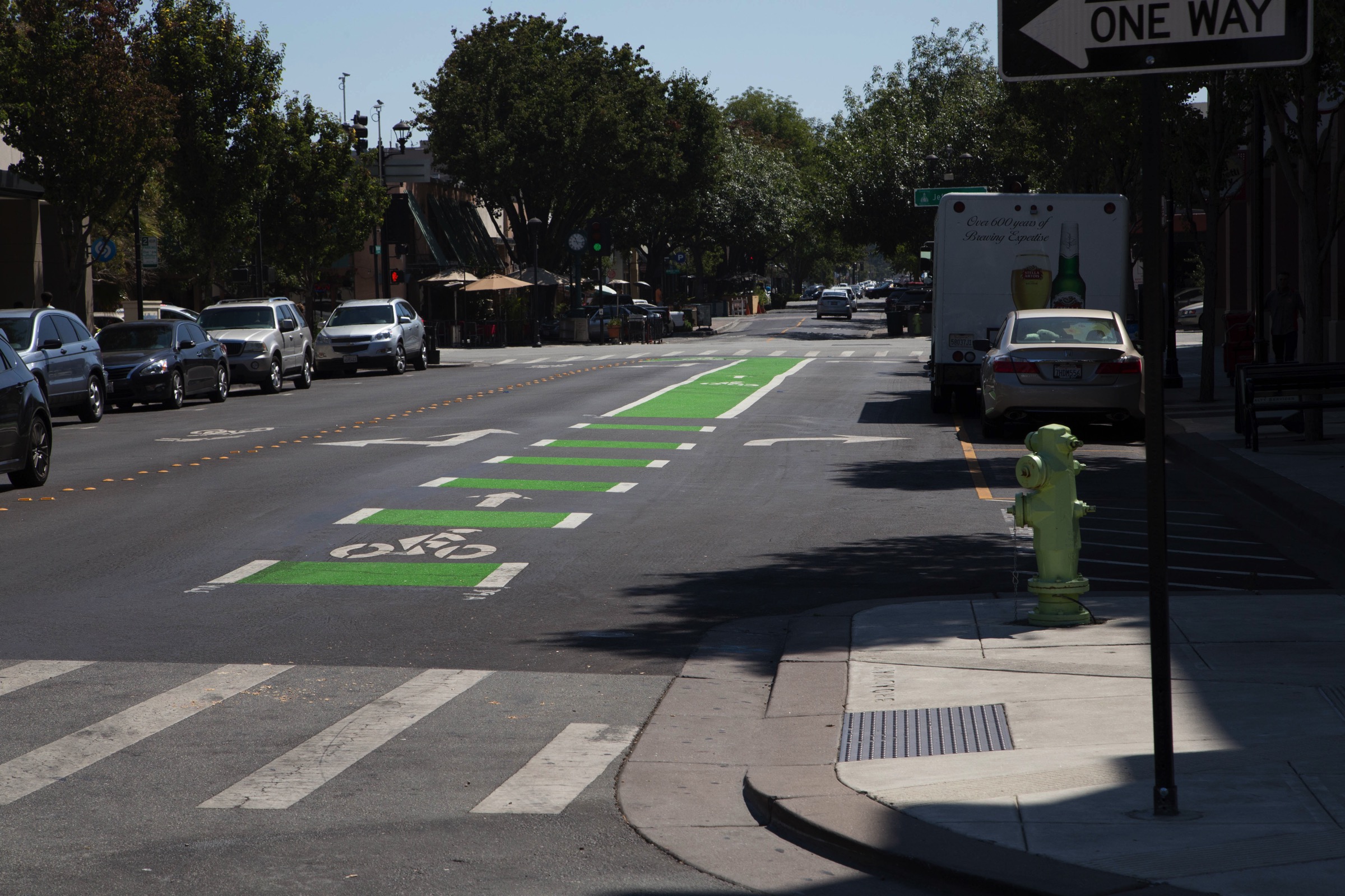 New bike lanes are slowly appearing in other parts of the city as well. Although Redwood City’s Complete Streets Advisory Committee is involved with helping improve traffic flow for motorized transport, an important part of its charter is to improve things for those of us who walk and ride bikes. The theory here is that if we can make things safer and easier for pedestrians and cyclists, many people will opt to leave their cars home and instead walk or ride. Clearly, the more we can get people out of their cars, the less automotive traffic there will be.