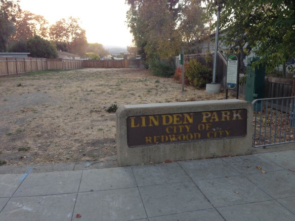 Linden Park is a little-known park in the southern part of Redwood City. For reference, it is right behind University Art (which itself is located on El Camino Real, below Woodside Road); peer through University Art’s parking lot fence, and across the street you’ll see the “entrance” to Linden Park. Which, except for the signs, can be easily mistaken for a dirt lot: