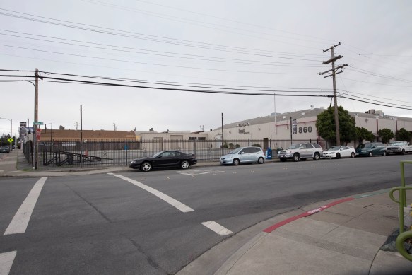 Together the building (with the prominent “860” on the side) and the lot used to house a classic car sales outfit. One day, assuming that they obtain the necessary approvals, these properties will be the home of Rocketship Charter School. Rocketship Education has proposed converting the building into classrooms and offices for a school that can serve up to 480 students in grades K-5, and plan to turn the open lot into a combination play area/driveway/parking area. Whereas the classroom building will be within the city, the playground will not. So as the kids go to and from recess, they’ll be walking back and forth across the city limits.