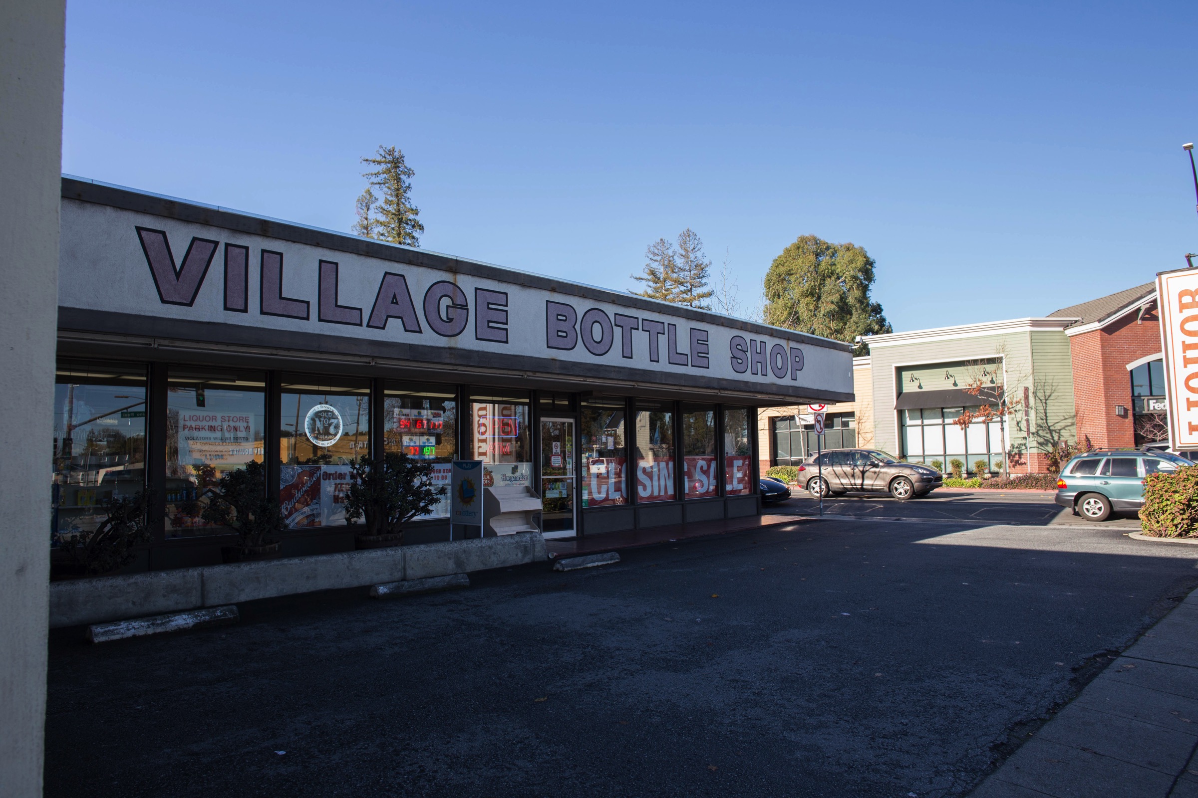 From Pasta Pomodoro I only had to walk across Whipple Avenue to reach my next destination: the Village Bottle Shop, located at 504 El Camino Real (again, on a corner of Whipple and El Camino). It seems that this little wine shop will be our latest business to close. I had a brief exchange with a man I believe to be the proprietor, and it seems that he can no longer afford the rent. The implication was that his rent has been (or is being) raised, although he didn’t actually say that. Currently he is holding a closing sale; it might be worth checking out if you are in the market for liquor.