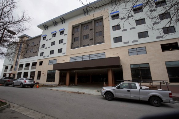 The hotel will have an inset drop-off zone (see above), perfect for rainy-day check-ins. Cars will drive in and almost immediately make a sharp left directly in front of the entry doors leading to the lobby. They can then proceed to the internal parking garage, which consumes about half of the ground floor and essentially all of the second floor.