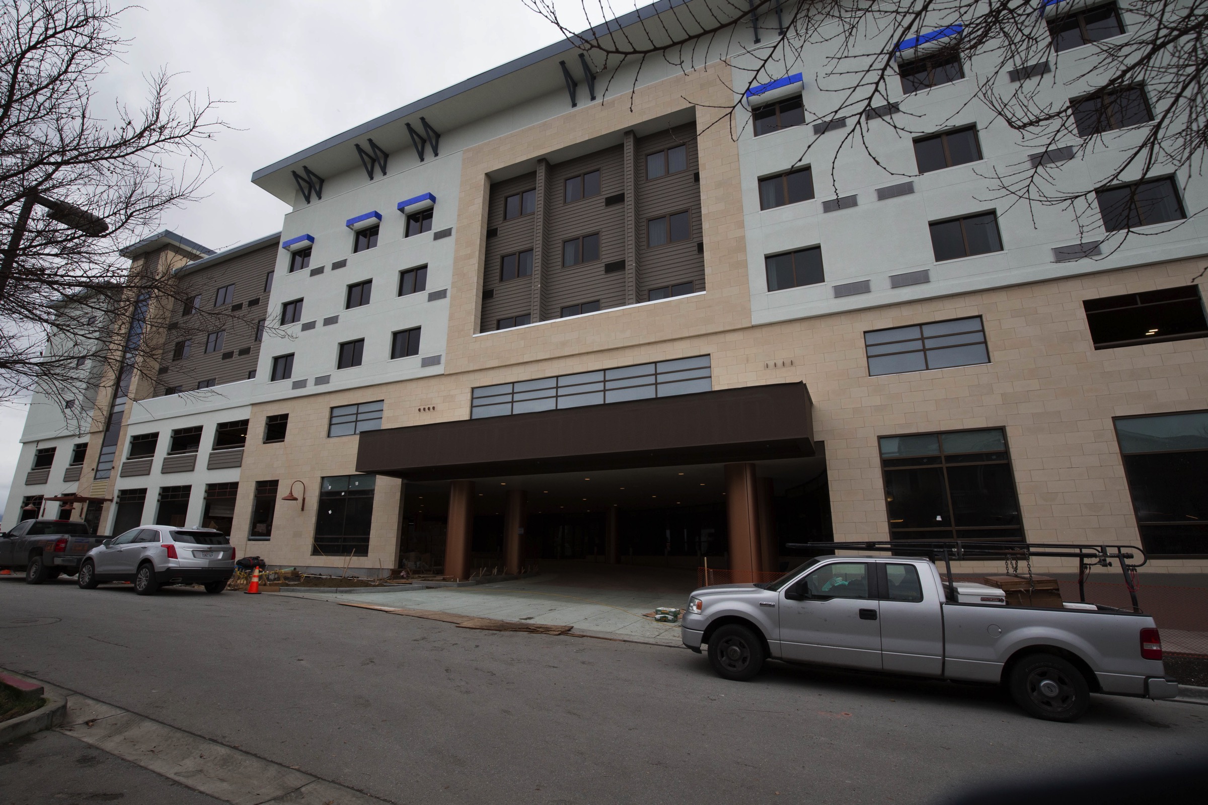 The hotel, too, seemed to have weathered our storms with only minor impacts: I saw a wall-mounted lamp hanging as if it had been blown off its mounting screws, but little else of note. From the outside, the building looks complete—although when I was there the landscaping had yet to be done. According to their website the hotel will open in February.