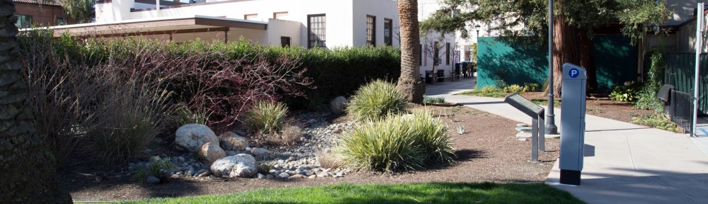 First off, based on the public comments and the subsequent Council discussion it became clear that many people feel (as I do) that more attention needs to be paid on revitalizing Main Street. Next, the Mayor remarked upon the small plant-and rock bioswale that a City intern had constructed between the Jefferson Post Office and the (currently closed) Howie’s Artisan Pizza restaurant: