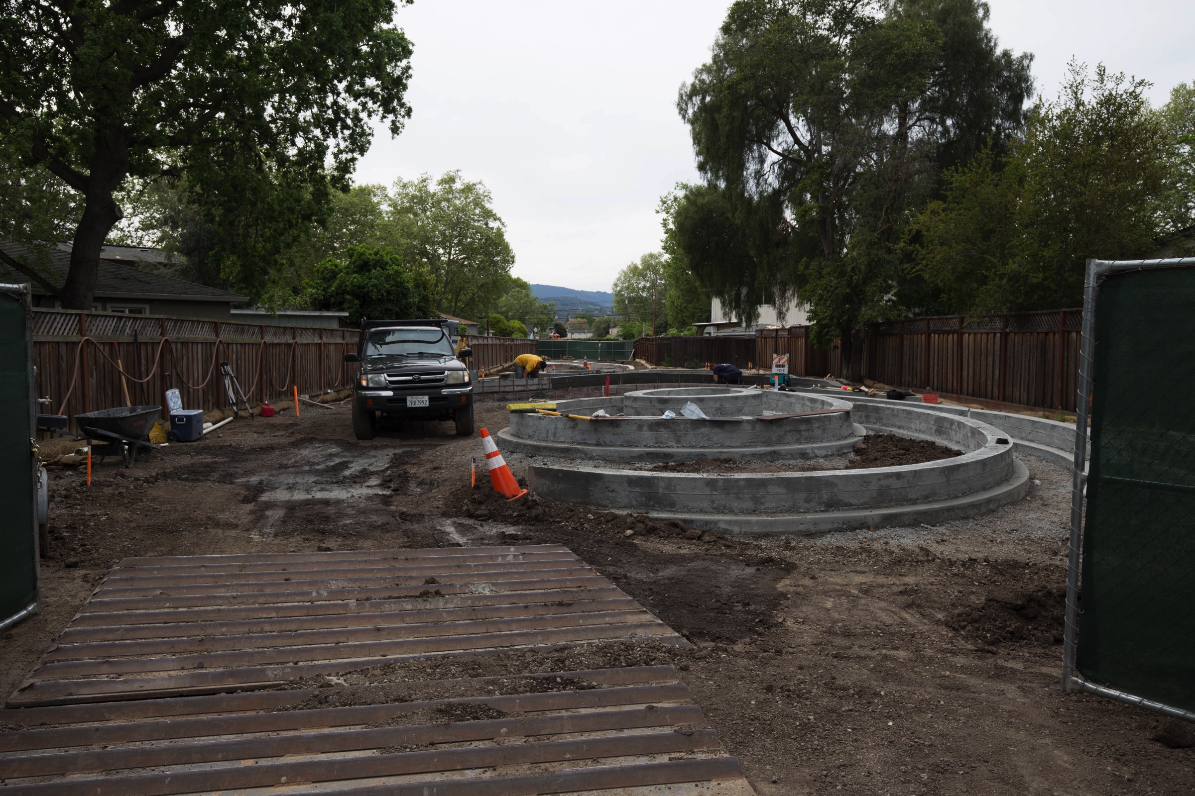 Getting away from downtown, I want to provide an update on Linden Park. I’ve written about this little park before: it’s located on the Hetch Hetchy right-of-way just behind University Art Supply, extending diagonally to Center Street (the street that dies into the Target parking lot at El Camino Real). Here is a link to the conceptual plan for the park, if you aren’t familiar with this project. Back in February, when I last wrote about it, the park was basically just an empty lot—but work commenced on the park shortly afterwards, and they’re making great progress: