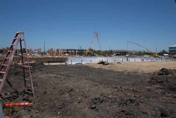 Getting to the Stanford in Redwood City project, the last time I visited the site all of the former buildings had been removed, large portions of the property had been graded, and there were huge piles of material for recycling: concrete, steel, and the like. Nowadays construction is well underway.