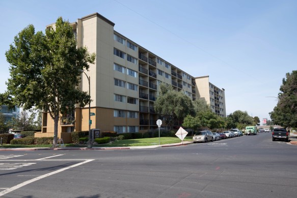 I mentioned housing. If you look back at the map, it is pretty clear where most of Friendly Acres’ housing can be found: in the lower portion where all of the small, regular streets can be seen. Most of this area consists of single-family housing, although there is an apartment building or two, such as this one immediately adjacent to the Stanford Medical Outpatient Clinic: