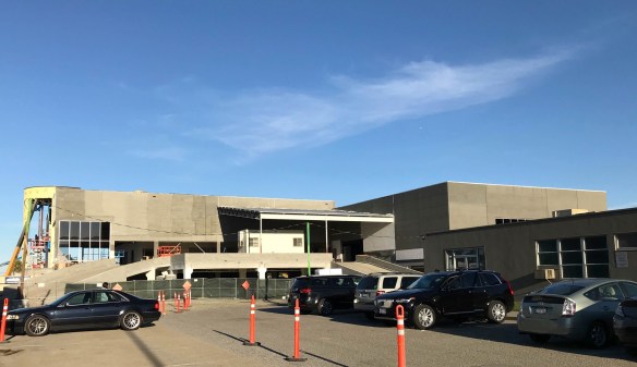 There are a number of projects underway in San Carlos at the moment, but let me update you on just one more: the San Carlos Honda dealership being constructed at 777 Industrial Road. I’ve been keeping an eye on this one both because it is an interesting building in a somewhat unusual location (for an automobile dealer) and because it means the loss of our Honda Redwood City dealership, on El Camino Real at Hopkins Avenue. (If you aren’t up on this one, KB Homes plans to build 33 condominiums on the Honda Redwood City site; see my post Go Stanford! for some background.) The San Carlos Honda dealership continues to make progress, although they won’t make their originally hoped-for opening date of late 2017. Given their progress, I would expect to see them open sometime in the first half of 2018: