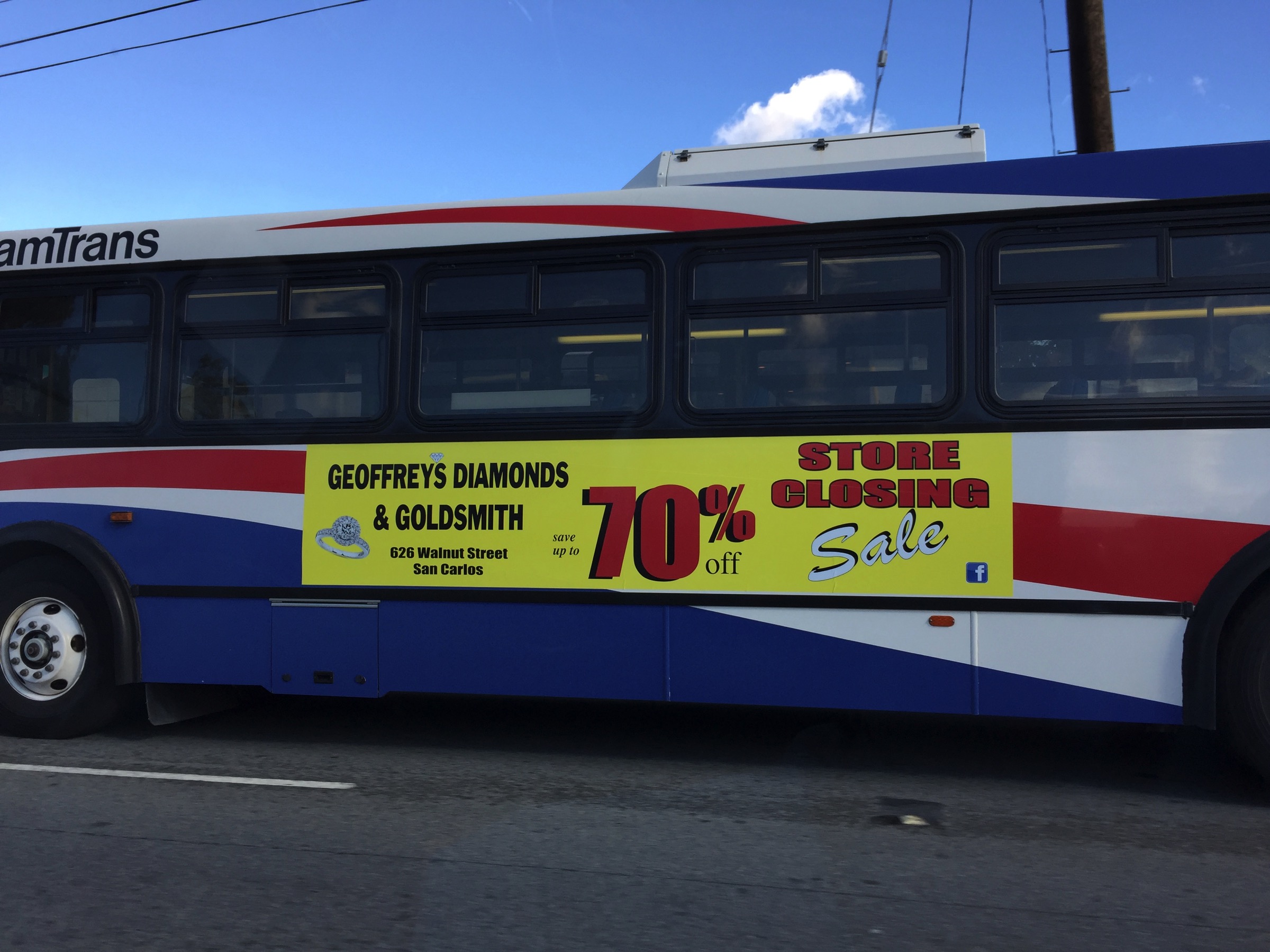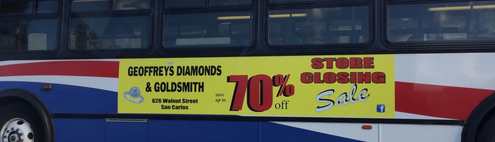 Some time ago—just in time for a major anniversary—a friend of mine clued me in to Geoffrey’s Diamonds, an independent jeweler on Walnut Street in San Carlos. Among their selection of high-end jewelry I was able to find a piece that was perfectly suited to the occasion. Regretfully, as you’ve probably seen (give the number of bright yellow signs on buses and trucks in the area), they’ve lost their lease and are closing—at least for now. They’re continuing to search for a new location in the immediate area that is both suitable and affordable, but given our tough real-estate market Geoffrey’s may well be leaving San Carlos forever.