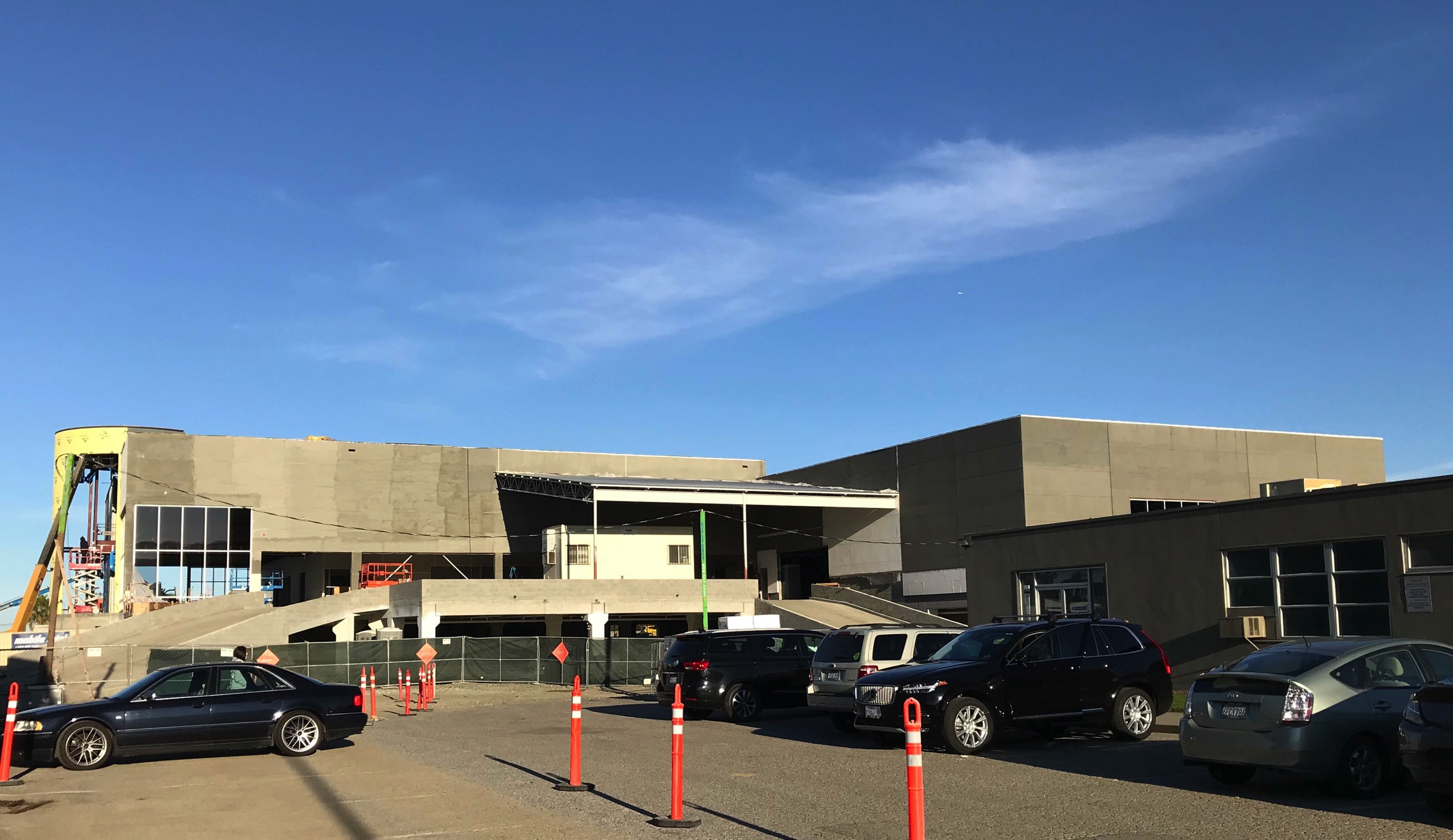 There are a number of projects underway in San Carlos at the moment, but let me update you on just one more: the San Carlos Honda dealership being constructed at 777 Industrial Road. I’ve been keeping an eye on this one both because it is an interesting building in a somewhat unusual location (for an automobile dealer) and because it means the loss of our Honda Redwood City dealership, on El Camino Real at Hopkins Avenue. (If you aren’t up on this one, KB Homes plans to build 33 condominiums on the Honda Redwood City site; see my post Go Stanford! for some background.) The San Carlos Honda dealership continues to make progress, although they won’t make their originally hoped-for opening date of late 2017. Given their progress, I would expect to see them open sometime in the first half of 2018: