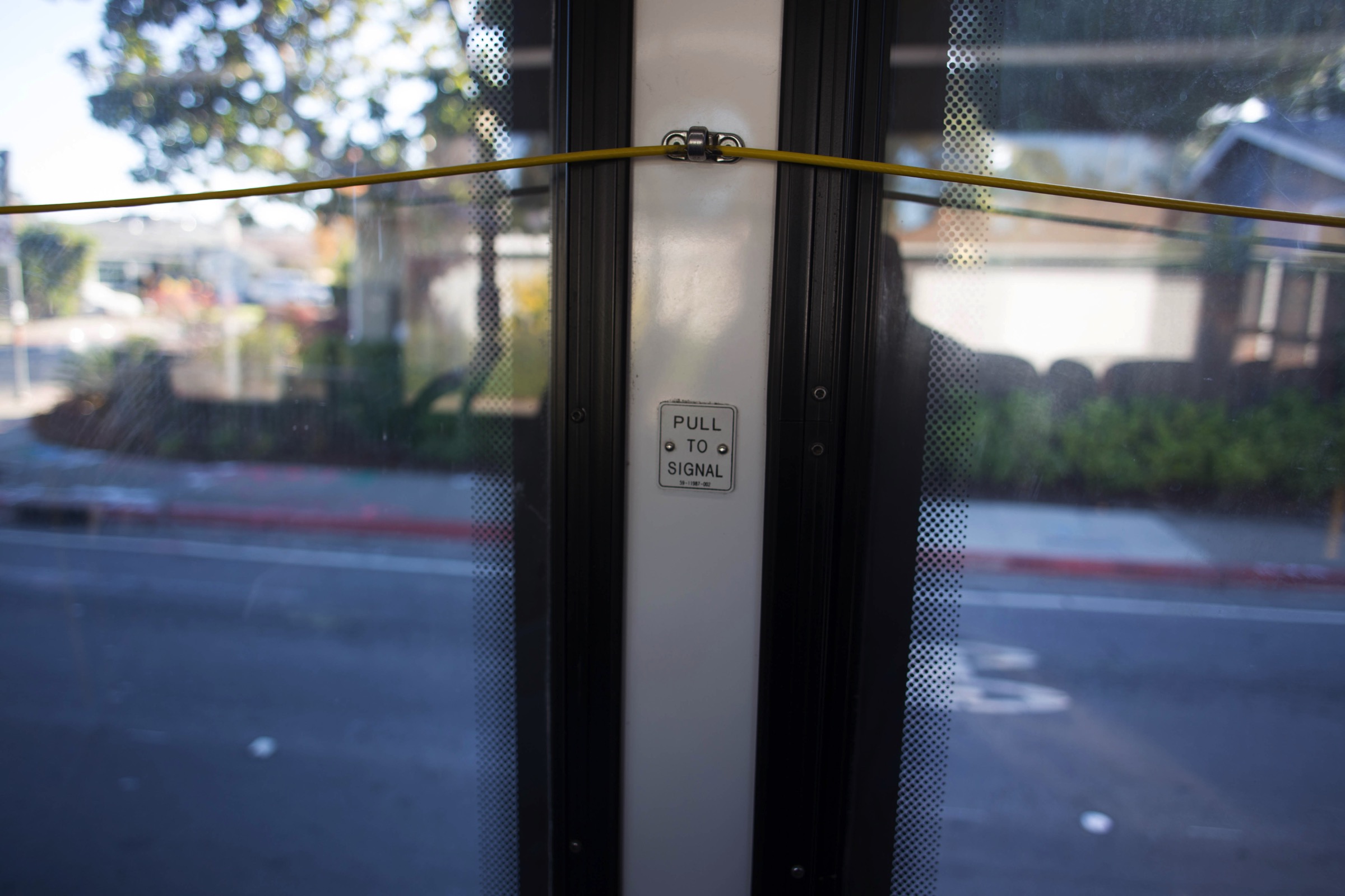 The bus stops aren’t equipped with electronic signs, but the buses themselves are: above the driver is one that indicates the next stop (there is also a voice announcement), and whether a stop has been requested. Request a stop by pulling the yellow cord or, if so equipped, pushing on the yellow tape running between the windows. Note that if someone has already requested a stop, pulling the cord has no effect.