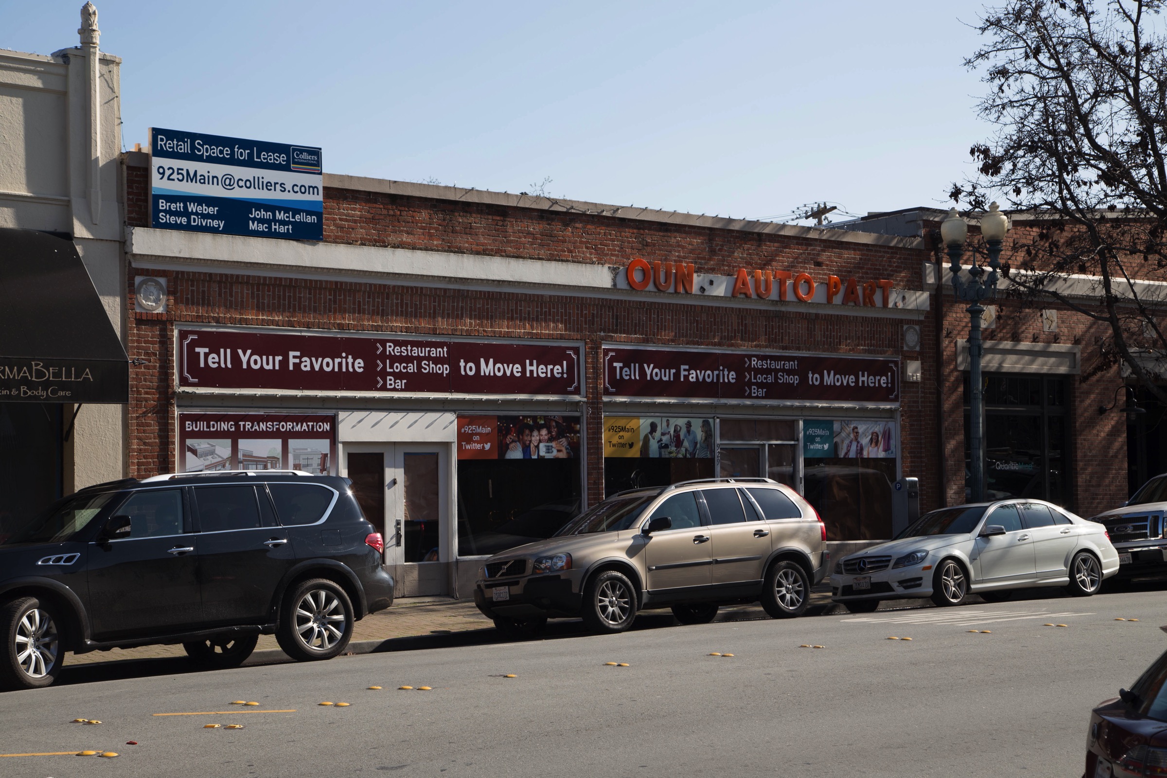 While I was out looking at signs I noticed the ones pasted above the windows of the old Young’s Auto Parts shop, which is going to be remodeled and turned into a two-story, 8,000 square-foot retail space: