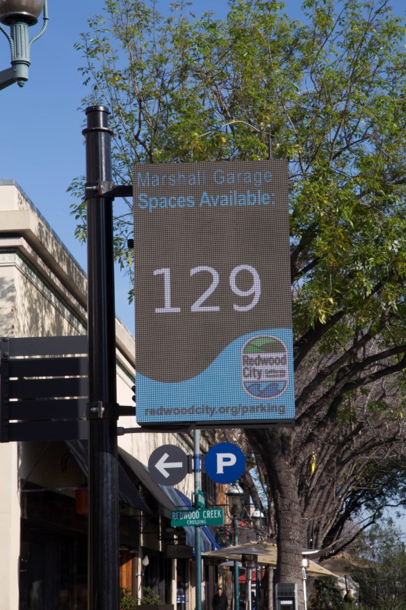 The signs are attractive enough, though, and I really like the Downtown Redwood City logo shown on the circular sign in the above image. There are a number of the circular blue “P” signs directing motorists to parking, but I definitely agree with the RCIA that additional signage aimed at routing drivers efficiently to their desired destination would be helpful. Now I’m looking forward to seeing what signs they come up with. Hopefully we’ll see them soon.