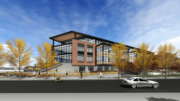 I should emphasize that this particular project is in no way connected to the Greystar proposal, and will be considered independently by the city. It is being brought to us by Premia Capital, who is just finishing up this “ship-shaped” office building at 550 Allerton: