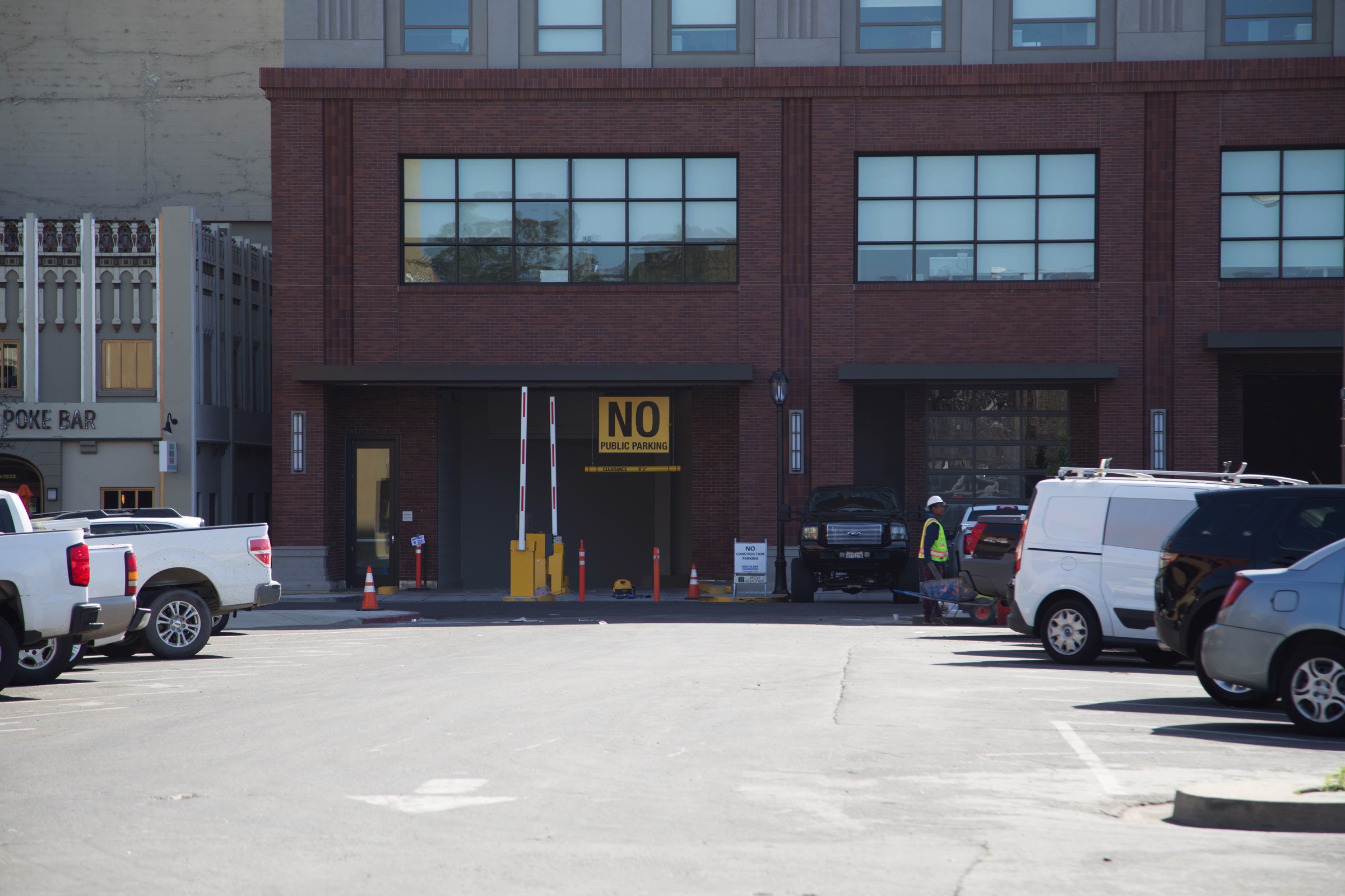 Note that the large “No Public Parking” sign should be temporary and will presumably be removed once the gates are in operation and the garage is open to the building’s tenants (during the day) and the public (the rest of the time).