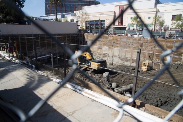 Currently no more than a deep hole in the ground, the building that will rise at the corner of Broadway and Jefferson will accommodate 150 cars in its two-level underground garage. Its garage entrance (and exit) will be on Jefferson, almost directly across from the Century Theatres garage entrance. No valets will be needed here; in the evenings and on weekends and holidays the public will self-park.