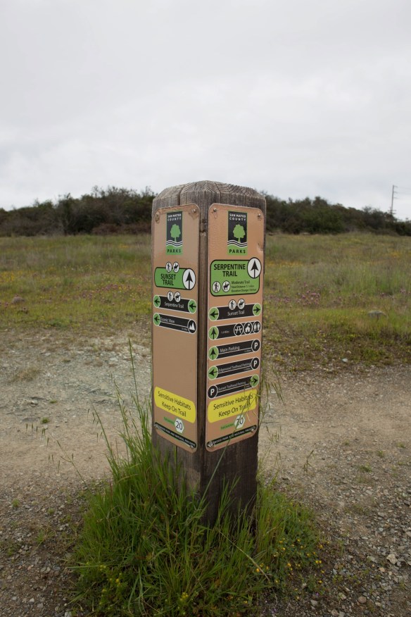 The other park entrances are no more than trailheads, although they do have clearly marked signs that direct you to other trails and to the main park entrance. At the park’s main entrance, as well as at the Sunset Trailhead and Edgewood Trailhead (after you cross the official park boundary), you’ll find information kiosks that include paper park maps (find an online map here). And whenever a trail meets up with another, you’ll find a really informative signpost like this: