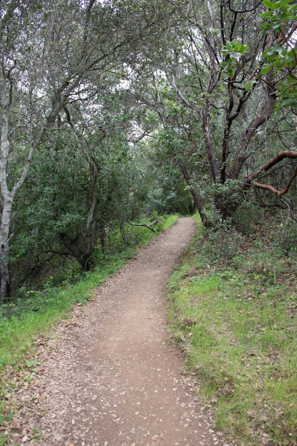 There is an entrance up in Emerald Hills, at the corner of Hillcrest Way and Sunset Way. There is no dedicated parking at this Sunset Trailhead, though—only neighborhood street parking. Because I’m willing to make the walk, and don’t have to concern myself with parking, I use that entrance a lot. If you are driving to the park, however, you may prefer one of the others. The main entrance on Edgewood Road is near to where Crestview Drive meets Edgewood (but on the south side of the street). There is a fair amount of parking here, especially when you include the “spillover” parking along Edgewood Road near the entrance. Another option is to park near the intersection of Edgewood Road and Cañada Road, and enter via the Edgewood Trailhead. Or, follow Cañada Road towards Woodside, and, after it passes under Highway 280, watch for the Clarkia Trailhead and its associated parking. Last but not least, if you live in or near downtown, or just prefer to park there, the County runs a free shuttle bus that goes from the Redwood City Transit Center to Edgewood Park on weekends; see https://parks.smcgov.org/ParkShuttle for more information, including the bus schedule.