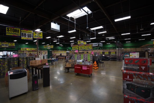 Redwood City’s store has a bit more inventory than the San Carlos store, although most of the good stuff — like lightbulbs — is gone. But ours seemed a bit more organized, and still had a bit more stuff on the shelves (those that weren’t taped off; some sections of our store are taped off much like in San Carlos). I noted Christmas Tree stands for $40, and all of the demonstration sink faucet sets were also on sale for $40. So there are some good deals to be had for the right person. Just don’t expect to go in with a list of specific items; you likely won’t find what you are looking for.