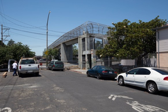 Walking to and from this location, incidentally, is just about to become much easier, thanks to the nearly complete Middlefield Road and Woodside Road Intersection Improvements project. This project is bringing crosswalks and new signals to this busy intersection. Previously, in order to cross here you had to walk a block over to Stambaugh Street, then up and over the over-crossing structure, then walk the block back to the intersection. Previously, the intersection of Middlefield Road and Woodside Road didn’t have marked crosswalks or signals that took pedestrians into account. In just a couple of weeks, it will.