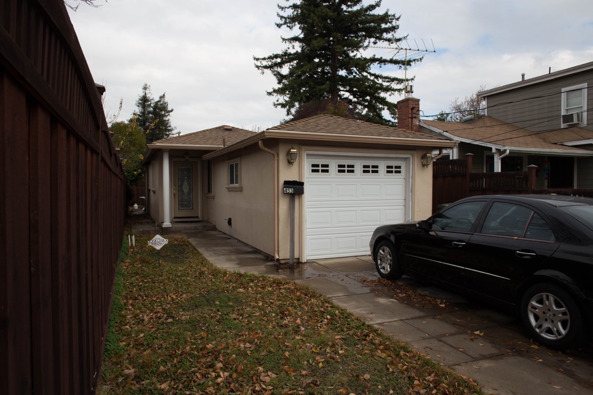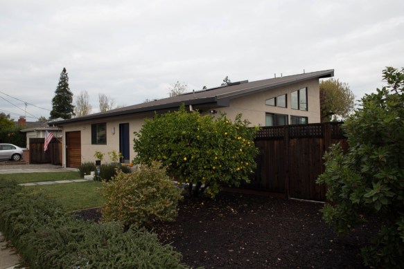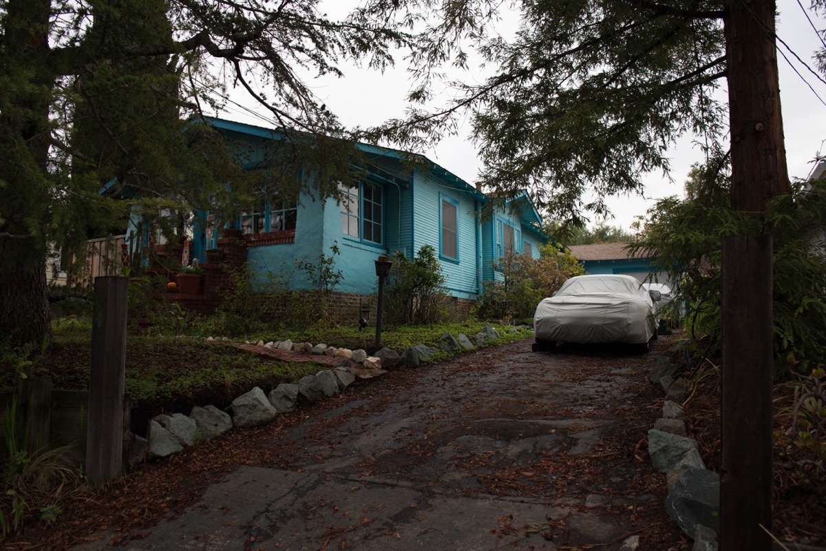 As you can see the unincorporated section doesn’t extend quite all the way to Jefferson Avenue. Thus, the following house, which sits at the corner of Jefferson Avenue and Alameda de las Pulgas, is within the city limits, while the one just beyond it (behind the flag, where the car is parked) is on county land: