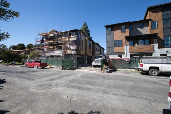 There isn’t too much to report, but I did pay a quick visit to the 12-unit townhouse project that is rapidly nearing completion at 150 El Camino Real.