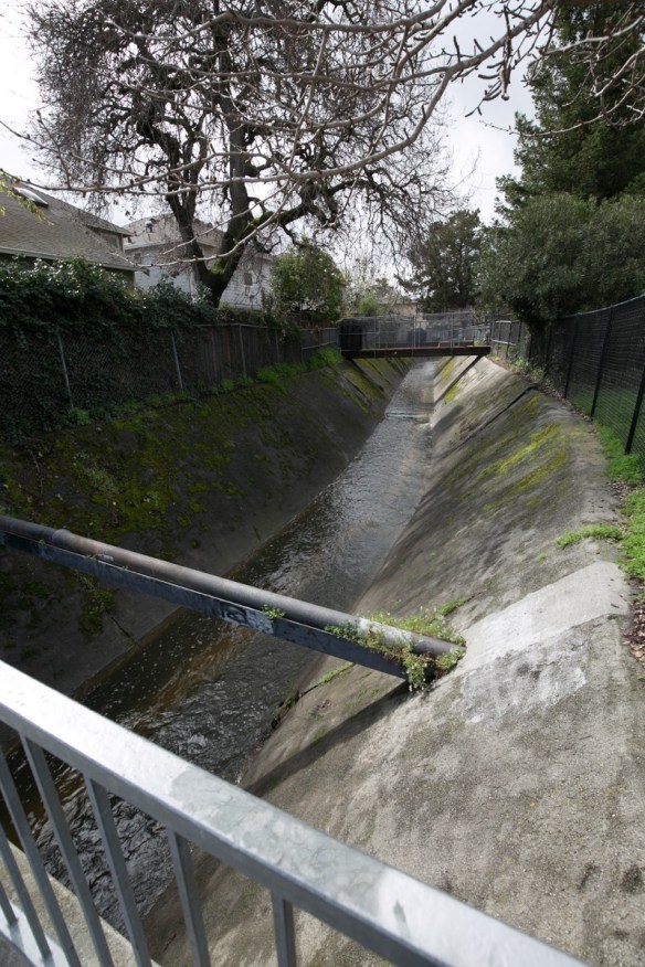 I first thought that I took it where the creek crosses under Roosevelt (between Ruby Street and Junipero Ave; you can see the creek on either side of the street there. But this exact picture is actually from a couple of blocks away: the intersection of Redwood Avenue and Kentfield.