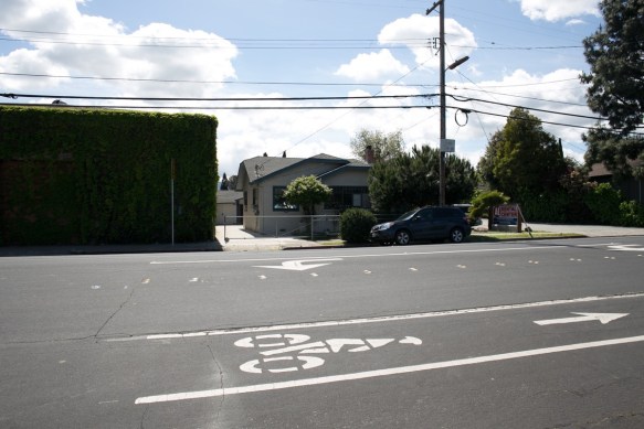 Finally, the project property would not include this light industrial building at the corner of Arguello Street and Hopkins Avenue (there isn’t much of Hopkins Avenue here; just a stub before it dies at the Caltrain tracks):
