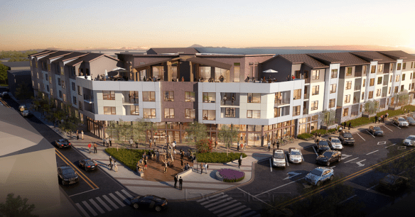 Finally, I was happy to learn that the Artisan Crossing project, proposed for a site on Old County Road in Belmont, was unanimously approved by the Belmont Planning Commission. When built, Artisan Crossing will be an attractive four-story apartment building featuring 250 apartments, 15% of which will be affordable at the Low income level (those making no more than 80% of the area’s median income level). The site is bordered by O’Neill Avenue, Karen Road and Elmer Street, and today houses a mix of buildings and parking. It is almost entirely surrounded by commercial buildings, although there is a good-sized pocket of single-family homes and apartments very close by. The main buildings on the site, which are apparently empty, once housed a company that made plastic composite products.
