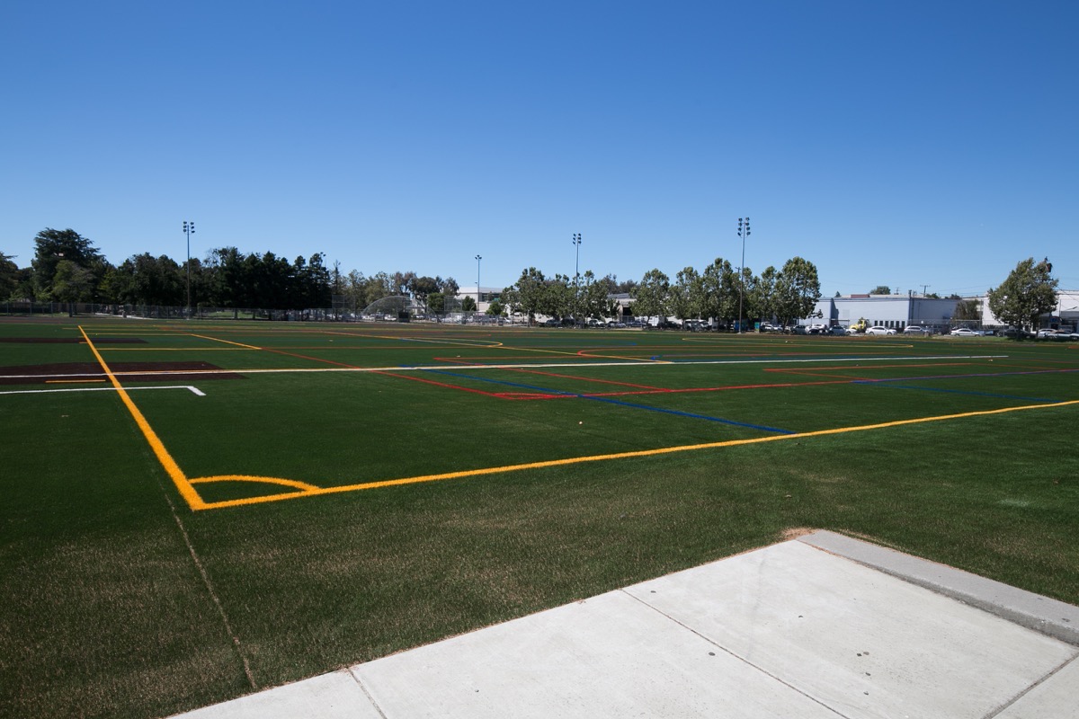 The playing fields — which are part of the adjacent park, and not the school, apparently — looked spectacular, having just recently received new artificial turf: