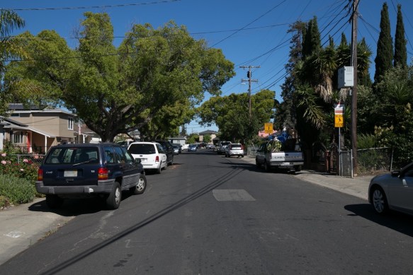 Because of its size, Redwood Village is one of those neighborhoods in which I was able to walk every street, all in a single afternoon. I’ve of course walked large parts of it in the past, but before doing the research for this blog post I had never been through the center of the neighborhood’s largest residential section. I’ve walked all of the streets that define the perimeter of that section — Charter Street, Spring Street, Douglas Avenue, and Middlefield Road — but had never before entered this somewhat secluded part of the neighborhood. As you can see from the above map, the only way into this residential area, which to my eye is shaped like a guitar headstock, is either from Middlefield Road via Flynn Avenue, or from Spring Street via either Kaynyne Street or Sweeney Avenue.