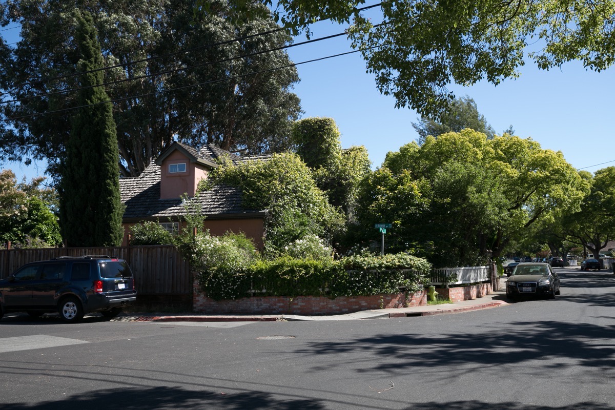 I like the classic look of the house, but I’d never live there: the house backs up onto Woodside Road, and it faces the Orchard Supply Hardware parking lot, across Manzanita Street. Not my idea of a cozy residential street, I’m afraid.